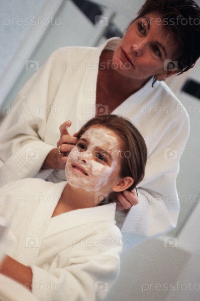 Мать наносит маску дочери