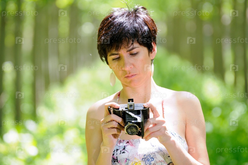 Женщина, держащая старинные камеры