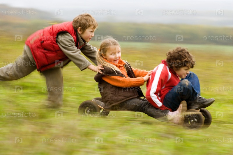Мальчики катаются с горы
