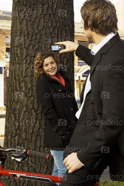 Молодой человек фотографирует женщину