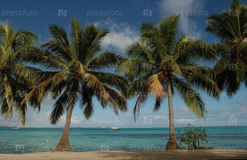 Пальмы на пляже, Муреа, Таити, Французская Полинезия, Южной части Тихого океана