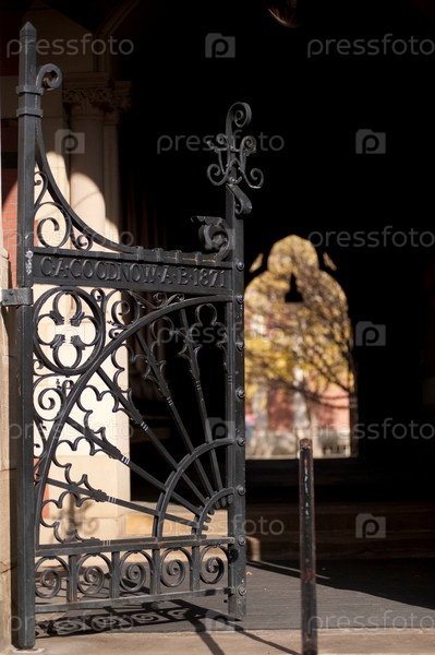 Декоративные ворота Гарвардского университета в Бостоне, штат Массачусетс, США