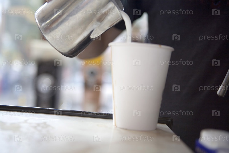 Молоко наливают в чашку