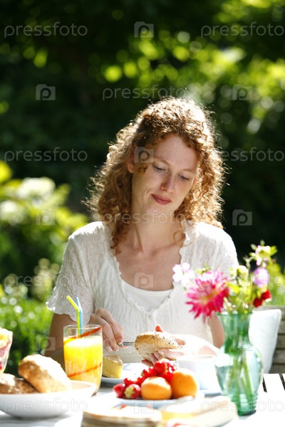 Красивая женщина в своем саду