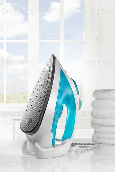 Утюг и стопка полотенец
