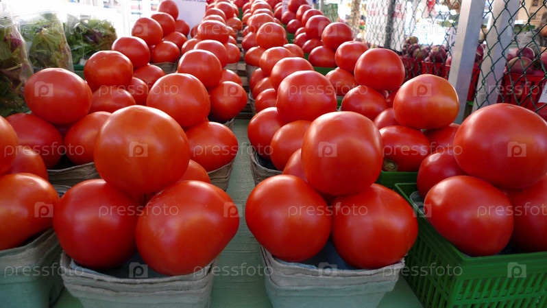Свежезаваренным выращенных помидоров на фермерском рынке