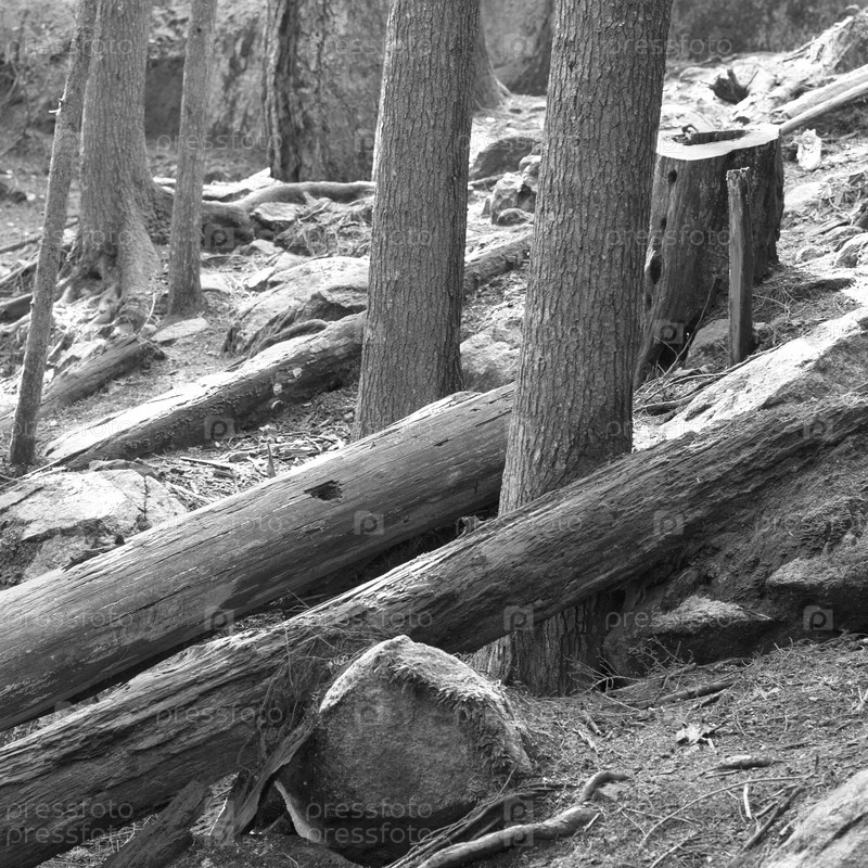 Поваленные деревья в лесу
