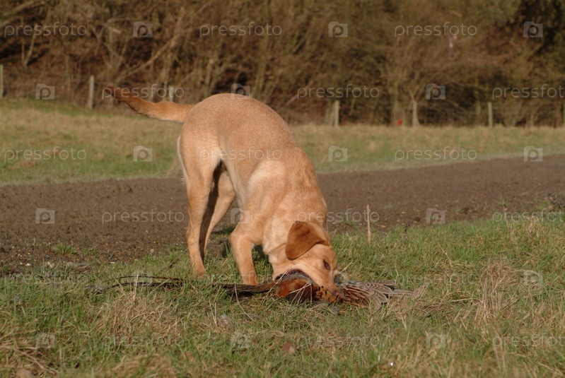 Собака с убитым фазаном во время охоты
