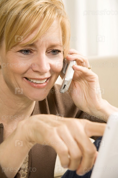 Женщина улыбается, говоря по телефону