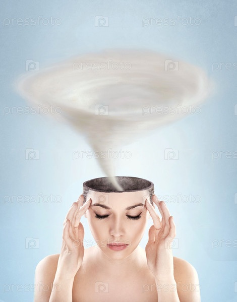Концептуальная фотография - торнадо в голове женщины