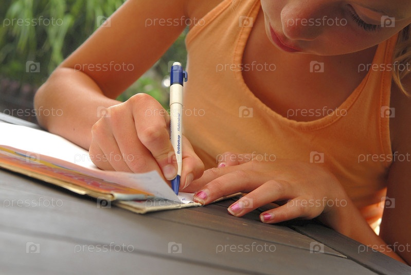Девочка пишет