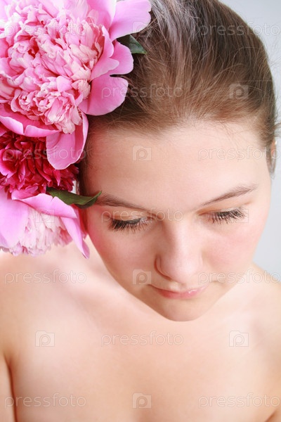 Молодая симпатичная женщина с цветами в волосах