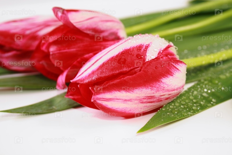 Тюльпаны крупным планом на белом фоне