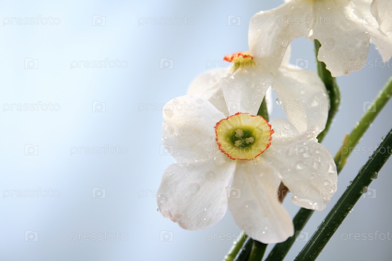 Нарциссы на голубом фоне