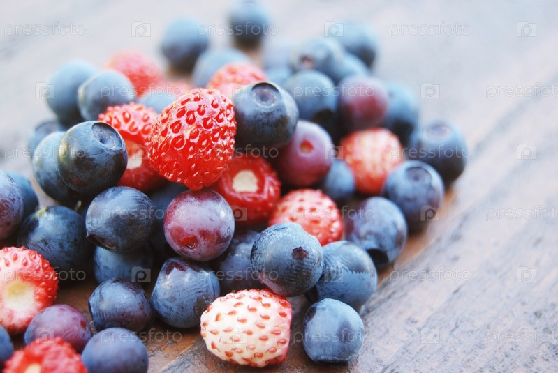 Вкусные ягоды на деревянной поверхности