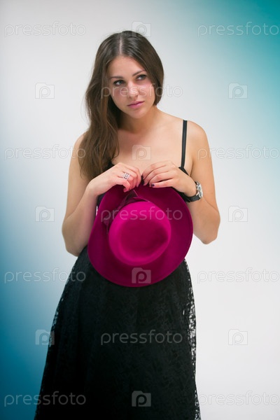 Красивая девушка со шляпкой в руках