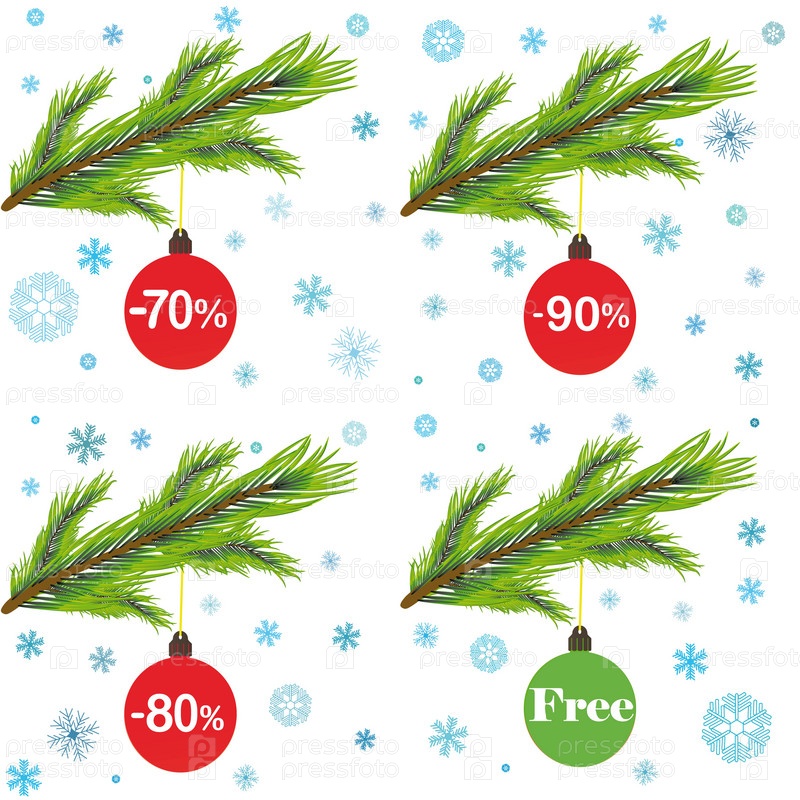 Елочные ветки с новогодними шарами со скидками