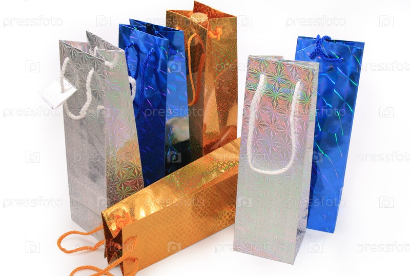 Подарочные пакеты на белом фоне