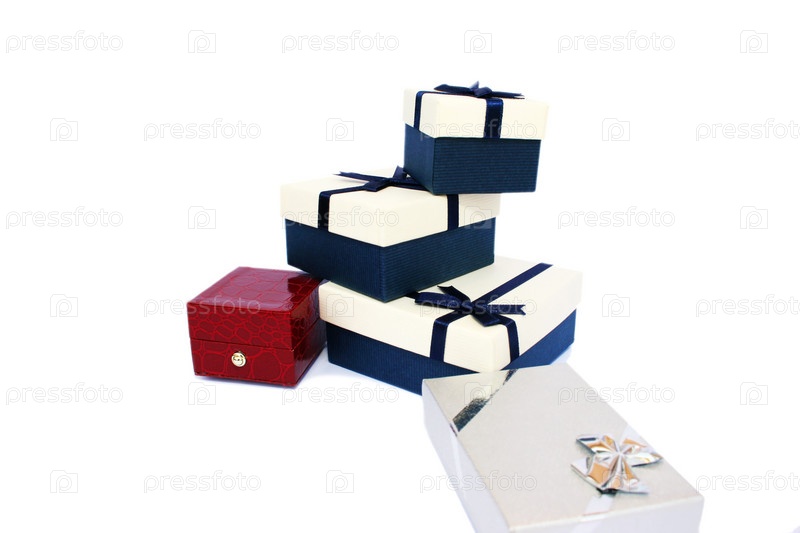 Подарочные коробки на белом фоне