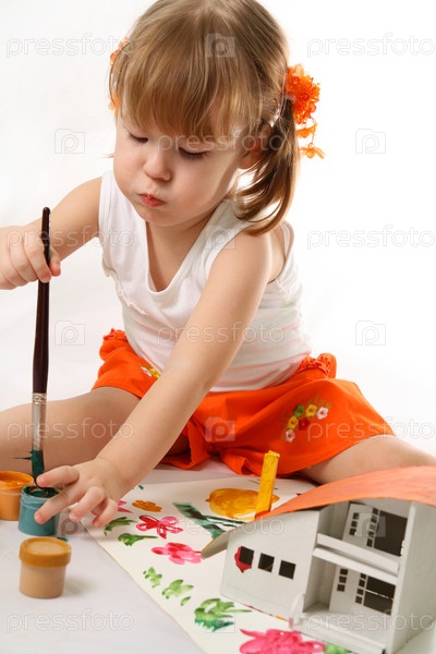 Маленькая девочка рисует красками