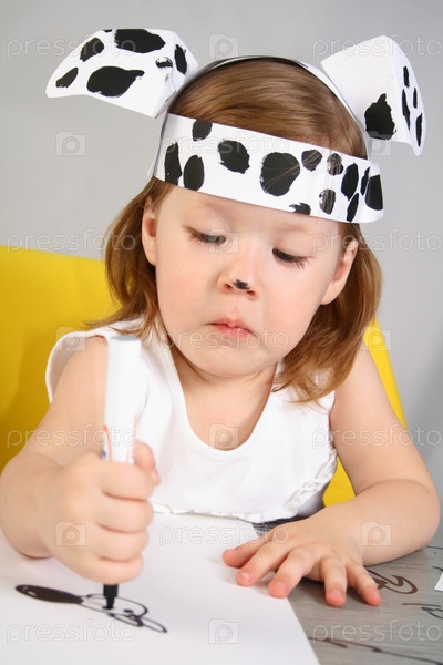 Маленькая девочка рисует фломастерами