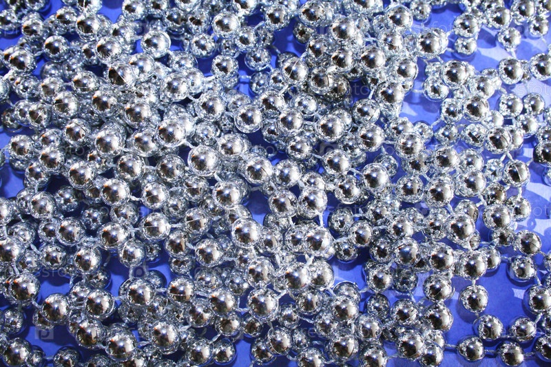 Серебристые бусины на синем фоне