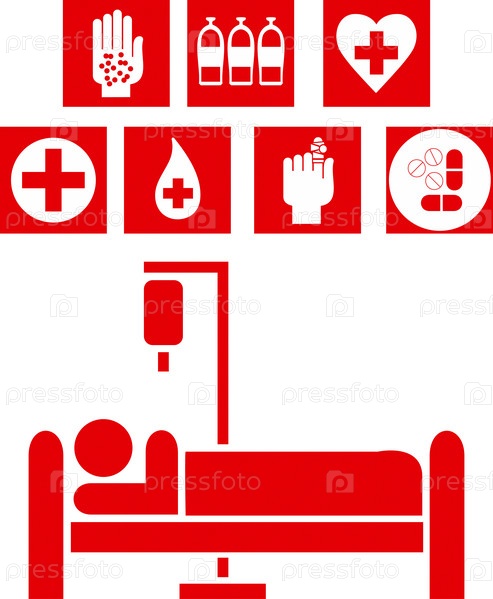 Медицинские красно - белые иллюстрированные знаки, изолированные на белом фоне