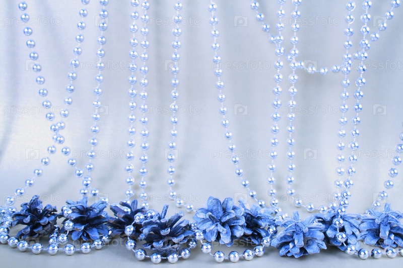 Рождественский фон: бусы и сосновые шишки