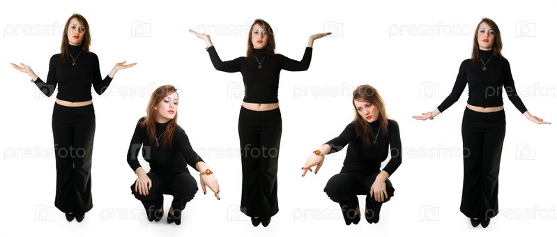 Коллаж из фотографий девушки в черной одежде
