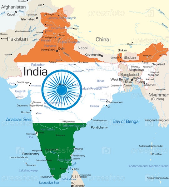 Карта Индии, окрашенная национальным флагом