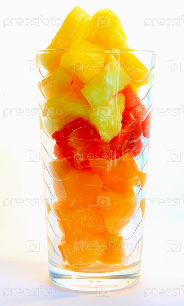 Нарезанные фрукты в стеклянном стакане