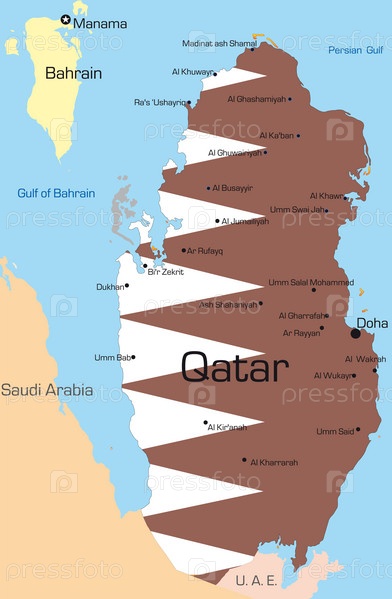 Карта страны Катар, окрашенная национальным флагом