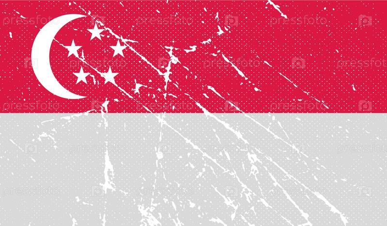 Флаг Республики Сингапур с старой текстуре. Вектор