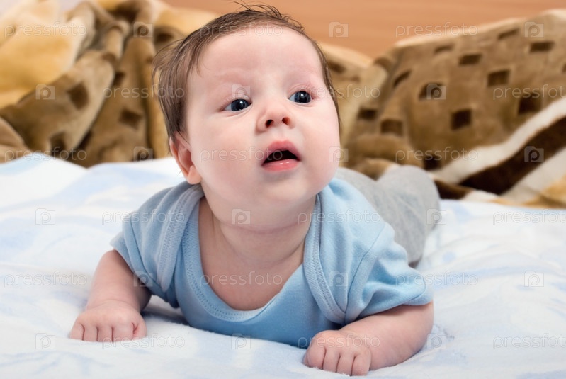 Маленький мальчик лежит на животе