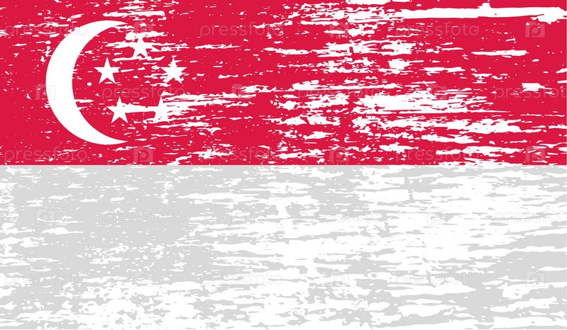 Флаг Республики Сингапур с старой текстуре. Вектор