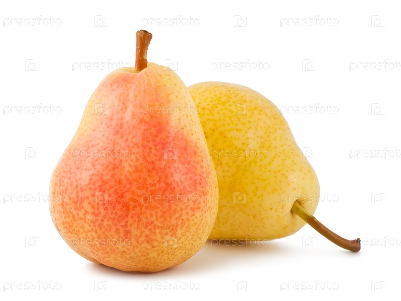 Две спелых груши на белом фоне