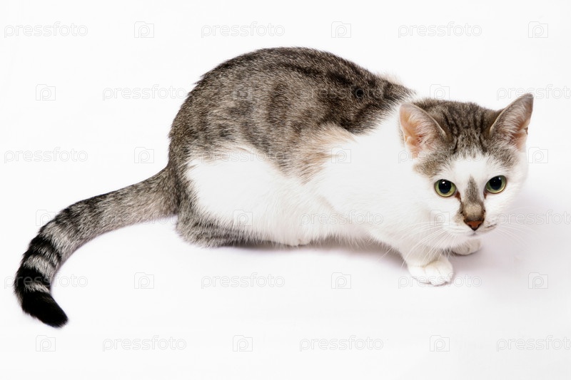 Кошка с зелеными глазами на белом фоне