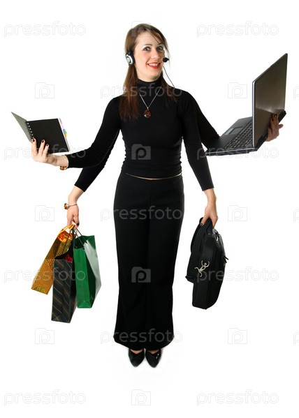 Женщина осуществляет сразу несколько видов деятельности