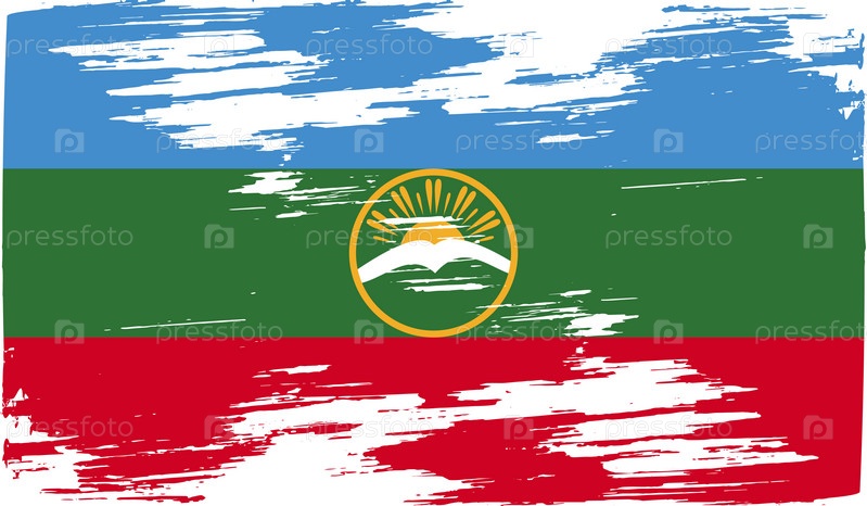 Флаг Республики Карачаево-Черкесия, Россия с старой текстуре. Вектор