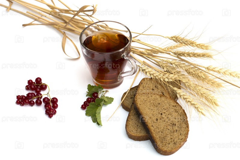 Стакан чая, пшеничные поля и хлеб