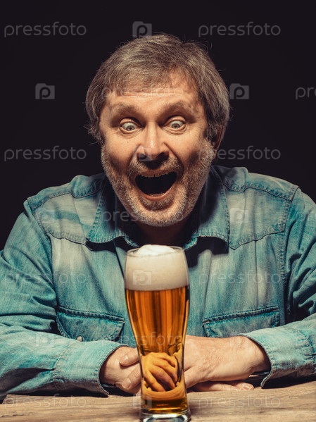 Кричать человек в Джинсовая рубашка с бокалом пива