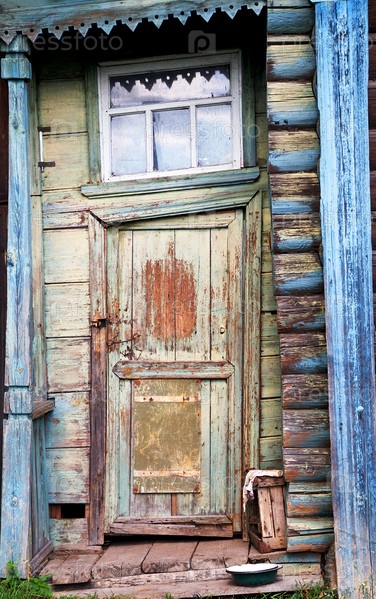 Входная дверь на фасаде древнего дома