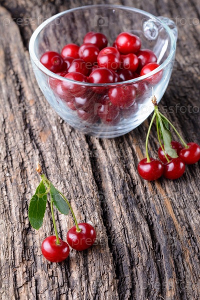 Спелой вишни, лежа на старый деревянный стол