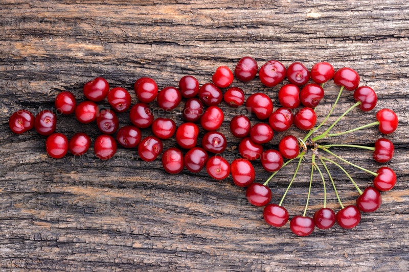 Спелой вишни, лежа на старый деревянный стол