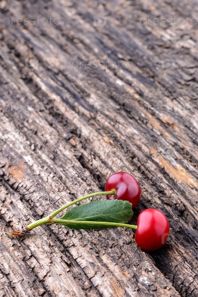 Спелой вишни, лежа на старый деревянный стол