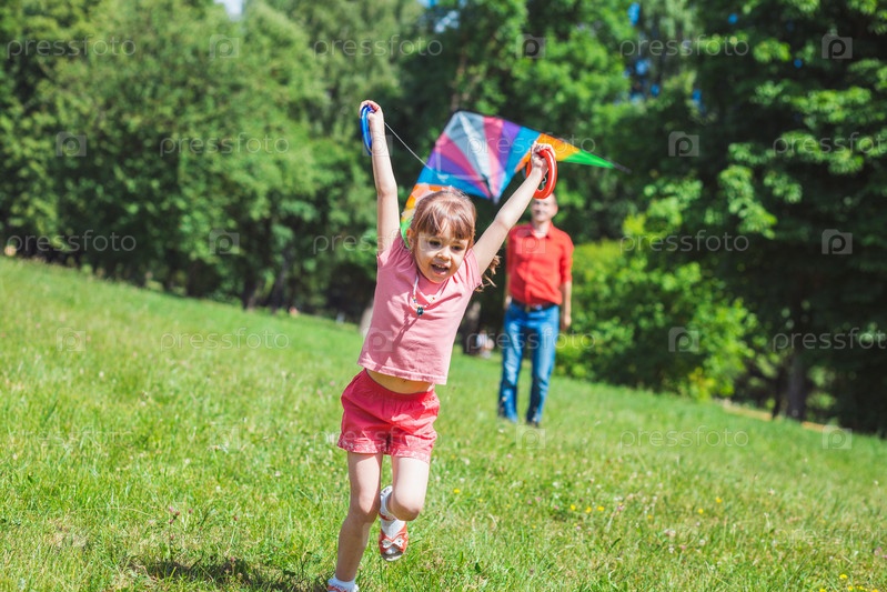Девочка и ее отец играть с кайтом
