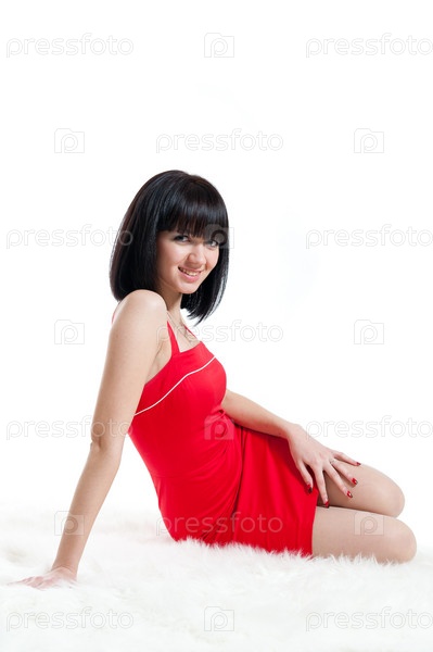 Девушка в красном платье на белом фоне