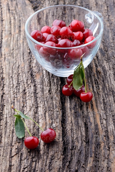 Спелой вишни, лежа на старый деревянный стол