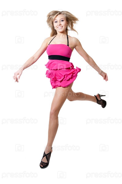 Девушка в розовом платье на белом фоне