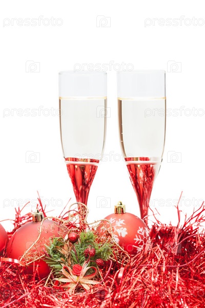 Два бокала шампанского и Ангела рисунок на красный
